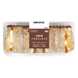 全粒粉入り食パンのたまごサンド、ハムサンド、クリームチーズサンドを組み合わせ...